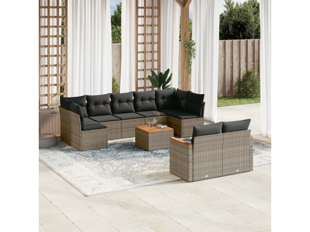 10dílná zahradní sedací souprava s poduškami šedá polyratan 3258700