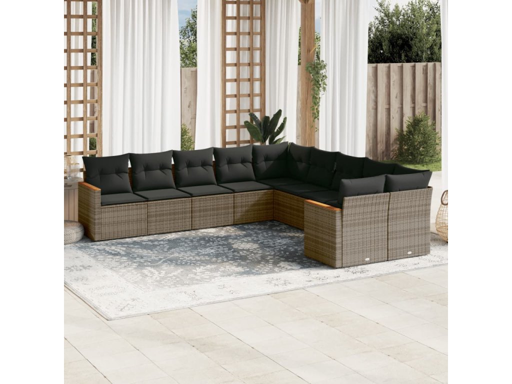10dílná zahradní sedací souprava s poduškami šedá polyratan 3258756