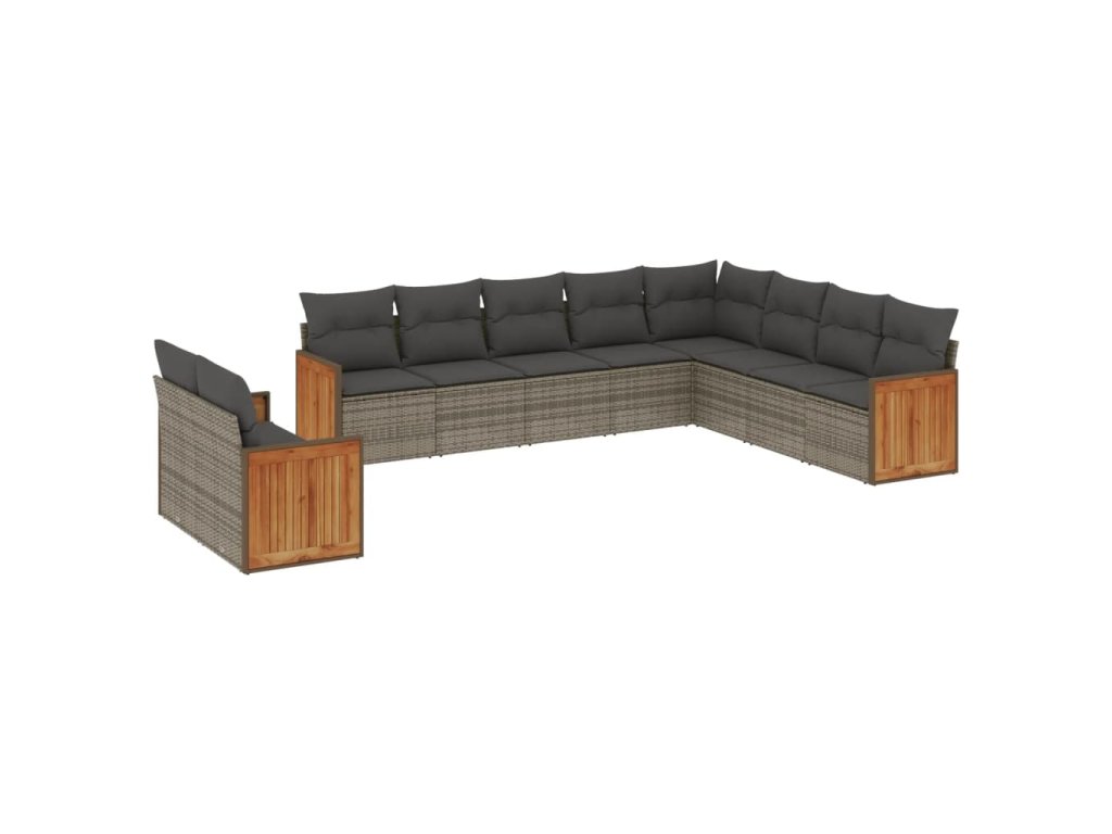 10dílná zahradní sedací souprava s poduškami šedá polyratan 3260198