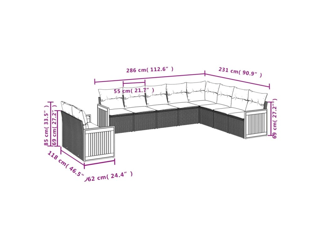 Tato zahradní sedací souprava je dokonalým doplňkem vaší zahrady, terasy nebo dvorku a poskytne vám pohodlné a příjemné místo, kde si můžete povídat s rodinou a přáteli nebo jen tak odpočívat a užívat si pobyt venku.