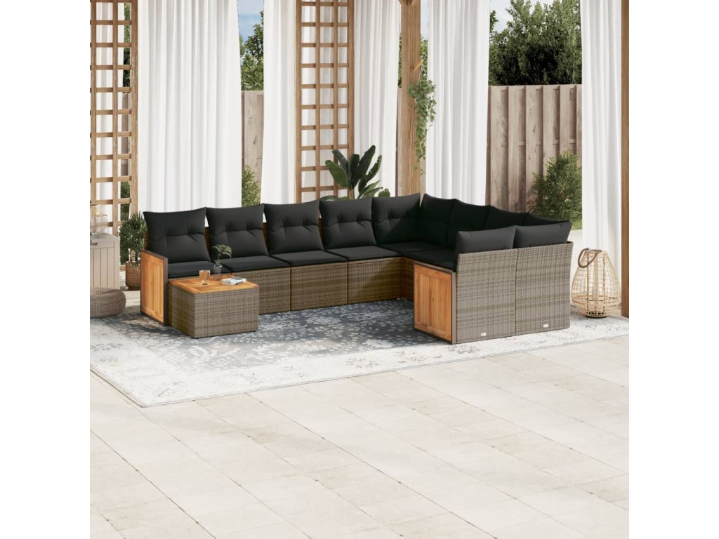 10dílná zahradní sedací souprava s poduškami šedá polyratan 3260401