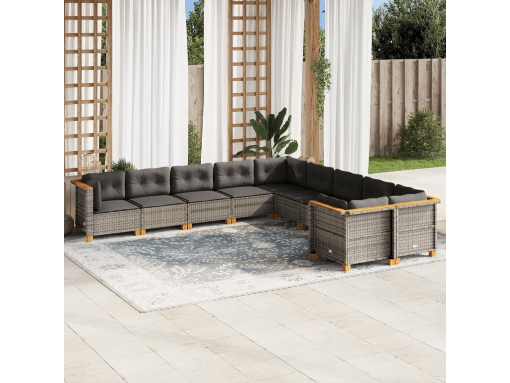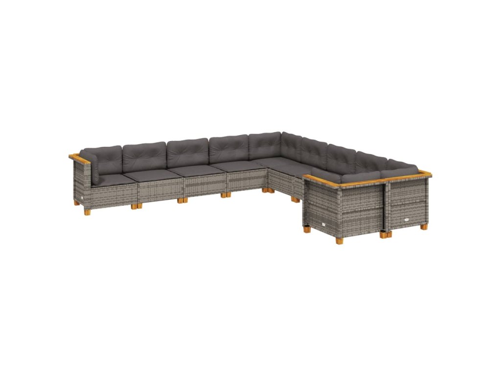 10dílná zahradní sedací souprava s poduškami šedá polyratan 3262044