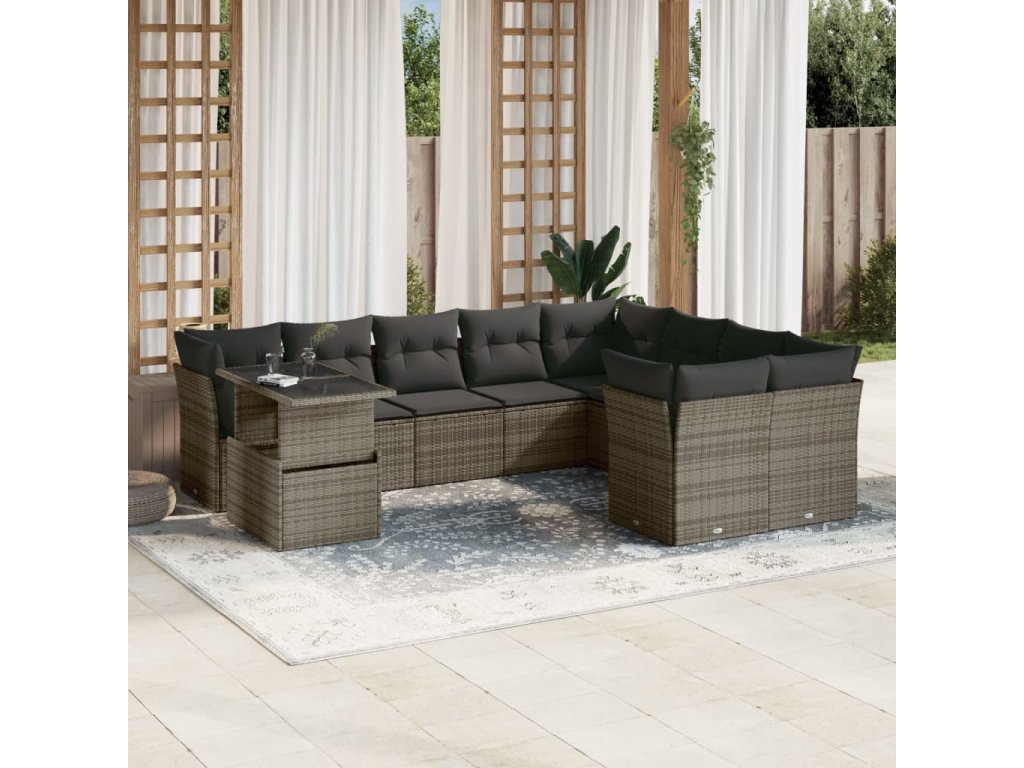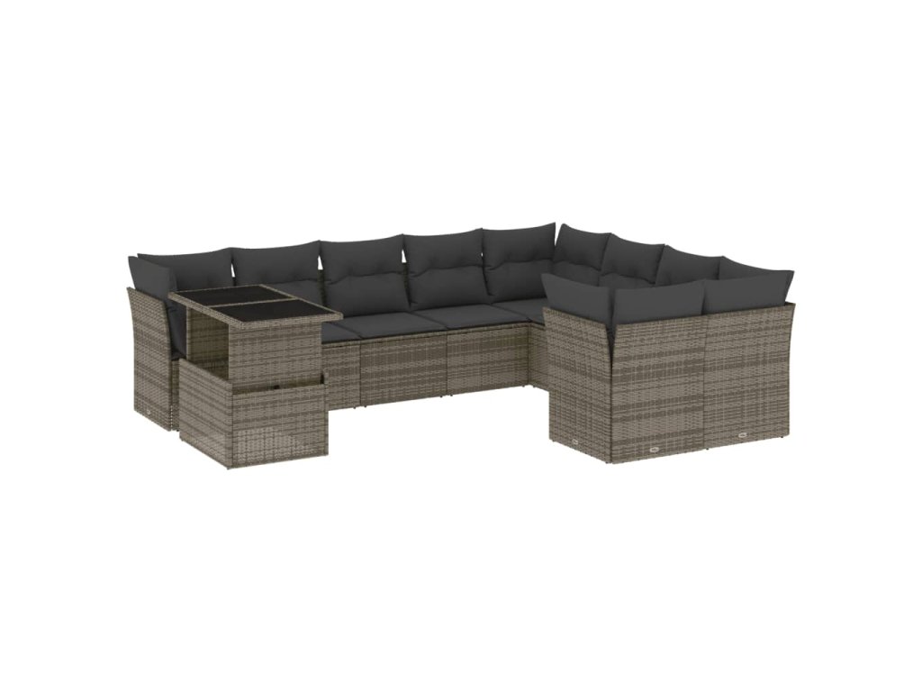 10dílná zahradní sedací souprava s poduškami šedá polyratan 3266850