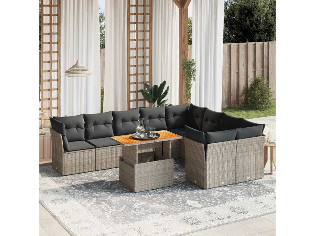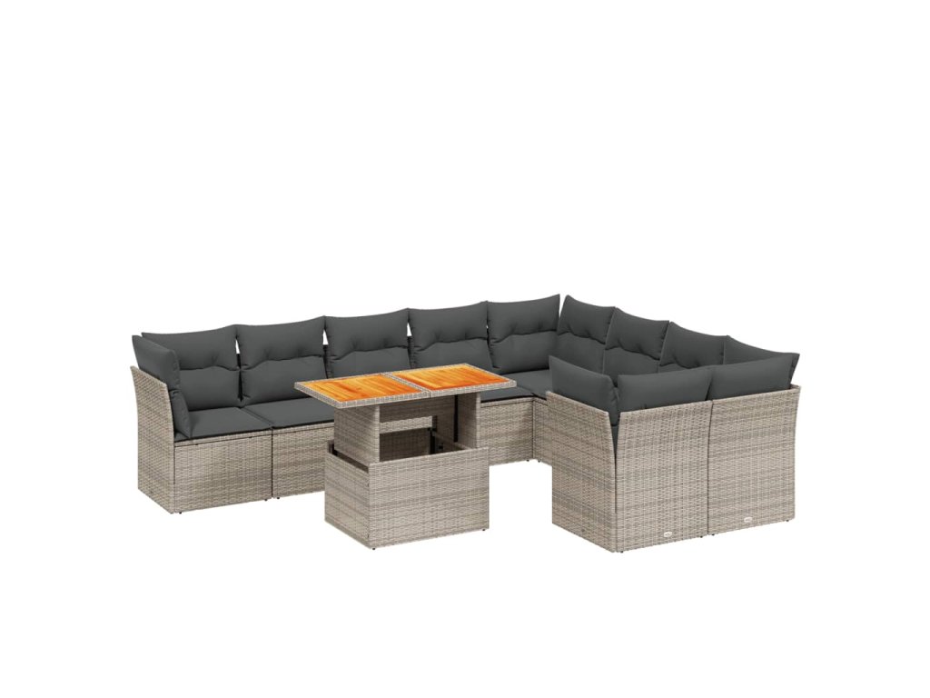 10dílná zahradní sedací souprava s poduškami šedá polyratan 3271011