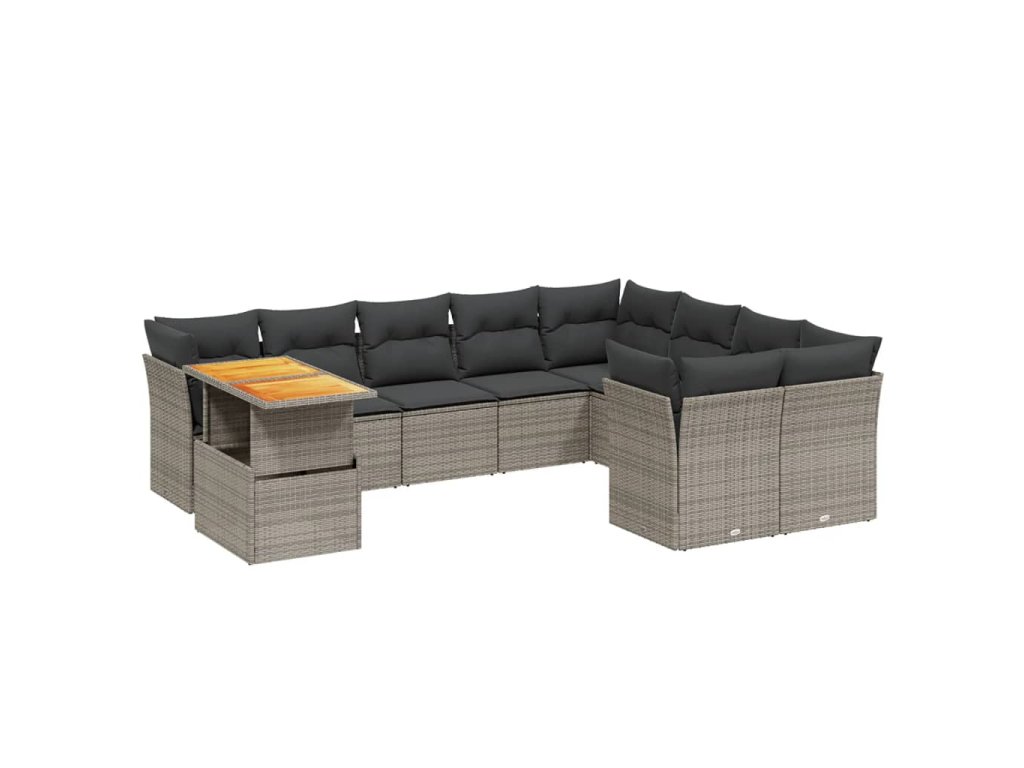 10dílná zahradní sedací souprava s poduškami šedá polyratan 3271018