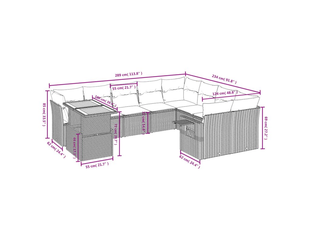 10dílná zahradní sedací souprava s poduškami šedá polyratan 3271921