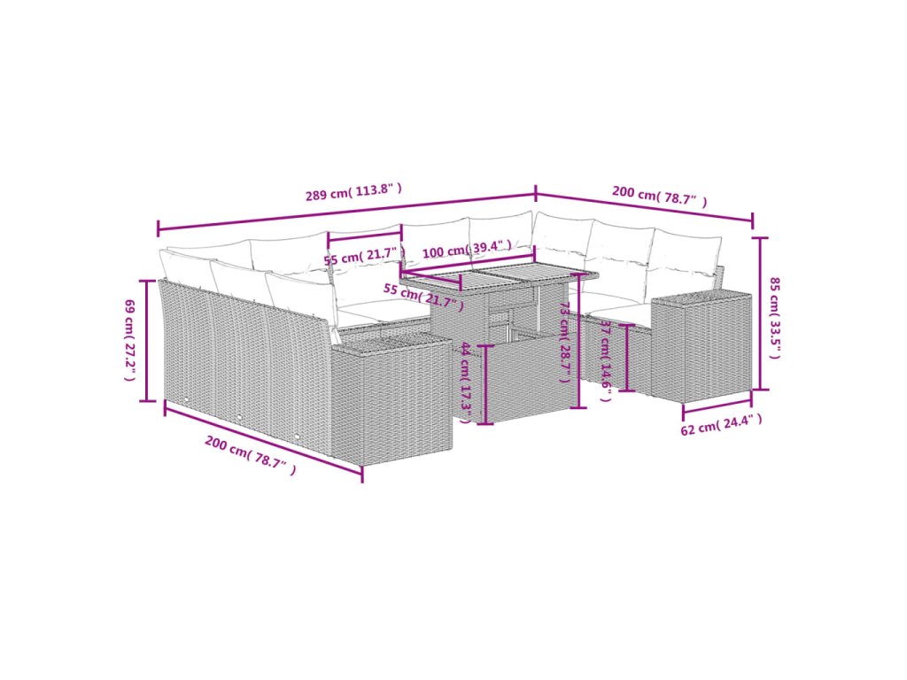 10dílná zahradní sedací souprava s poduškami šedá polyratan 3272782
