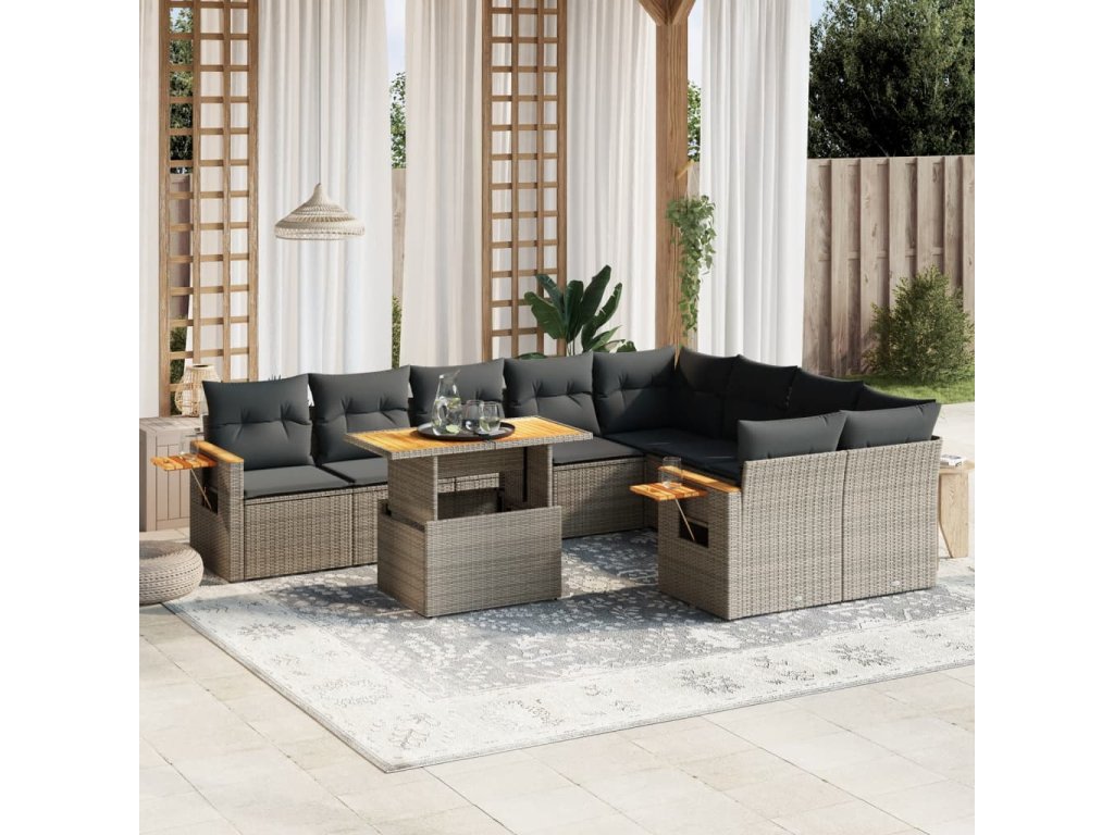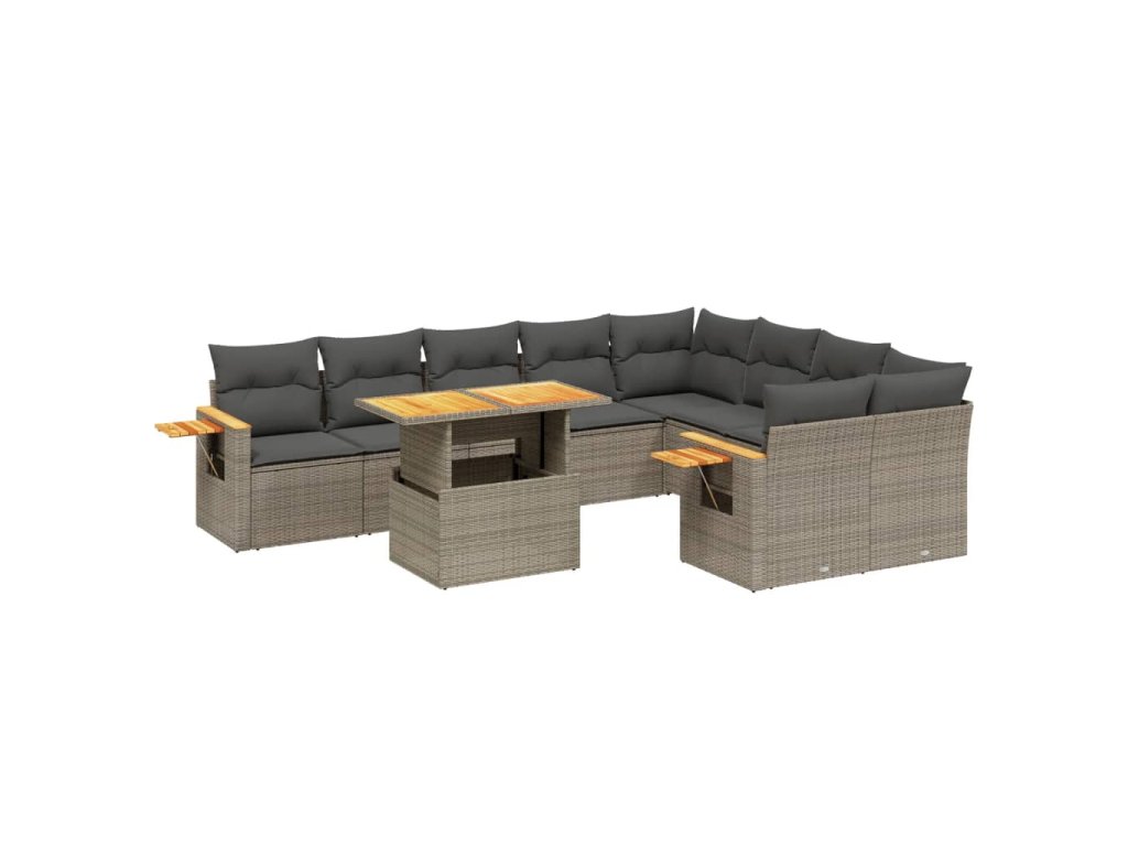 10dílná zahradní sedací souprava s poduškami šedá polyratan 3273678