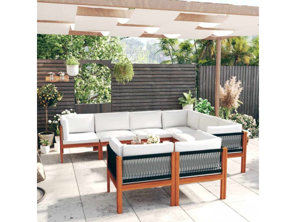 10dílná zahradní sedací souprava s polštáři krémové dřevo akácie a provaz 3057892