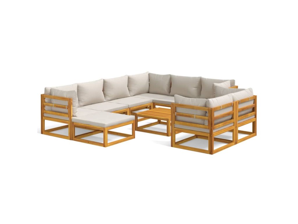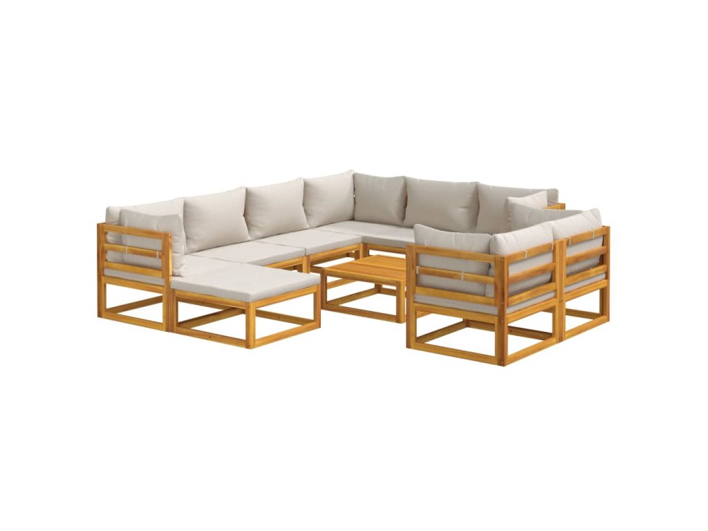 10dílná zahradní sedací souprava světle šedé podušky masiv 3155292