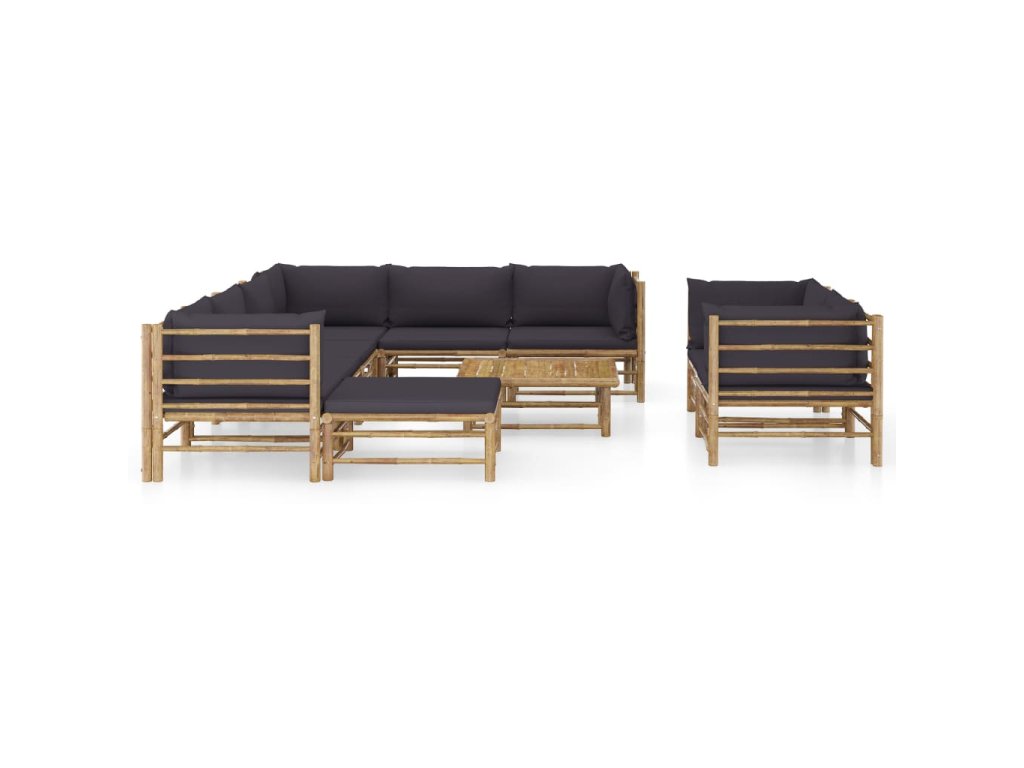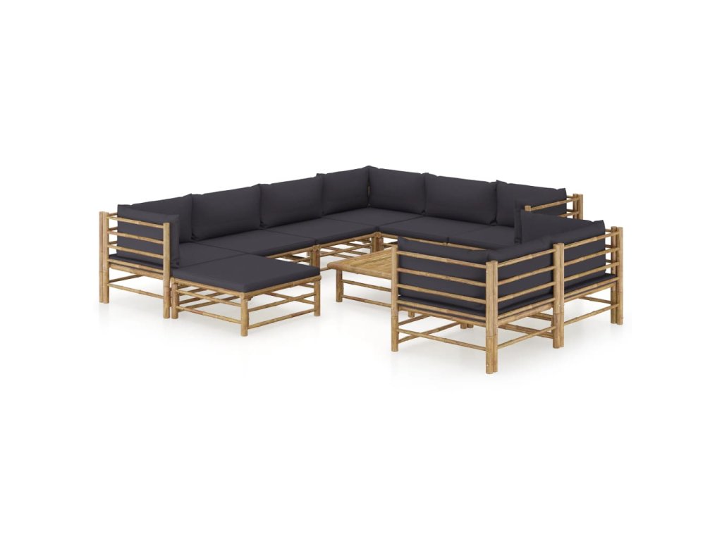 10dílná zahradní sedací souprava + tmavě šedé podušky bambus 3058222