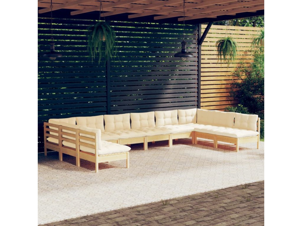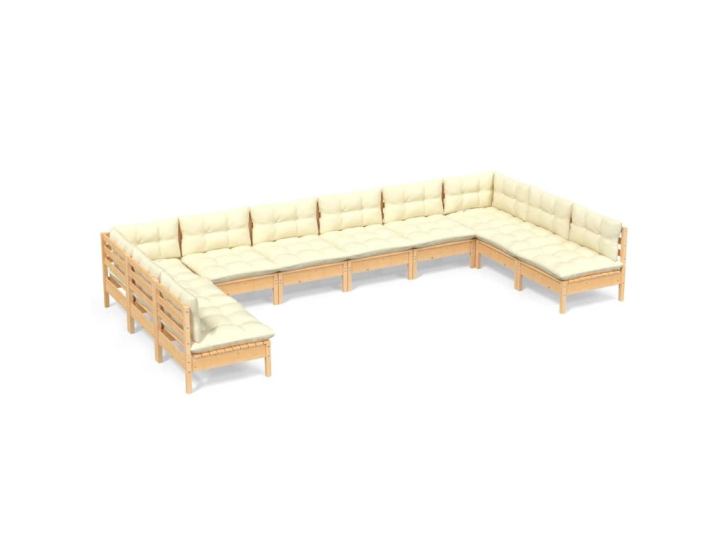 10dílná zahradní souprava krémové podušky masivní borovice 3097187