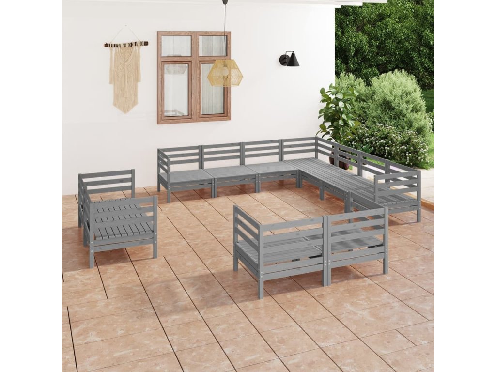 11dílná zahradní sedací souprava masivní borovice šedá 3083216