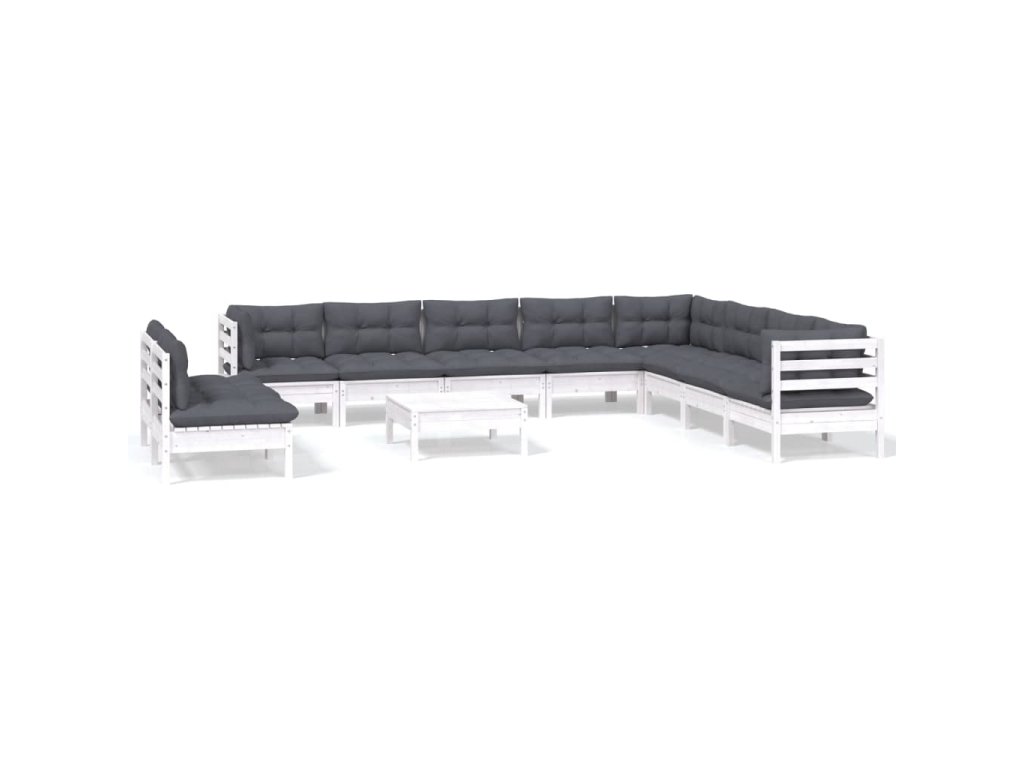 11dílná zahradní sedací souprava podušky bílá masivní borovice 3096846