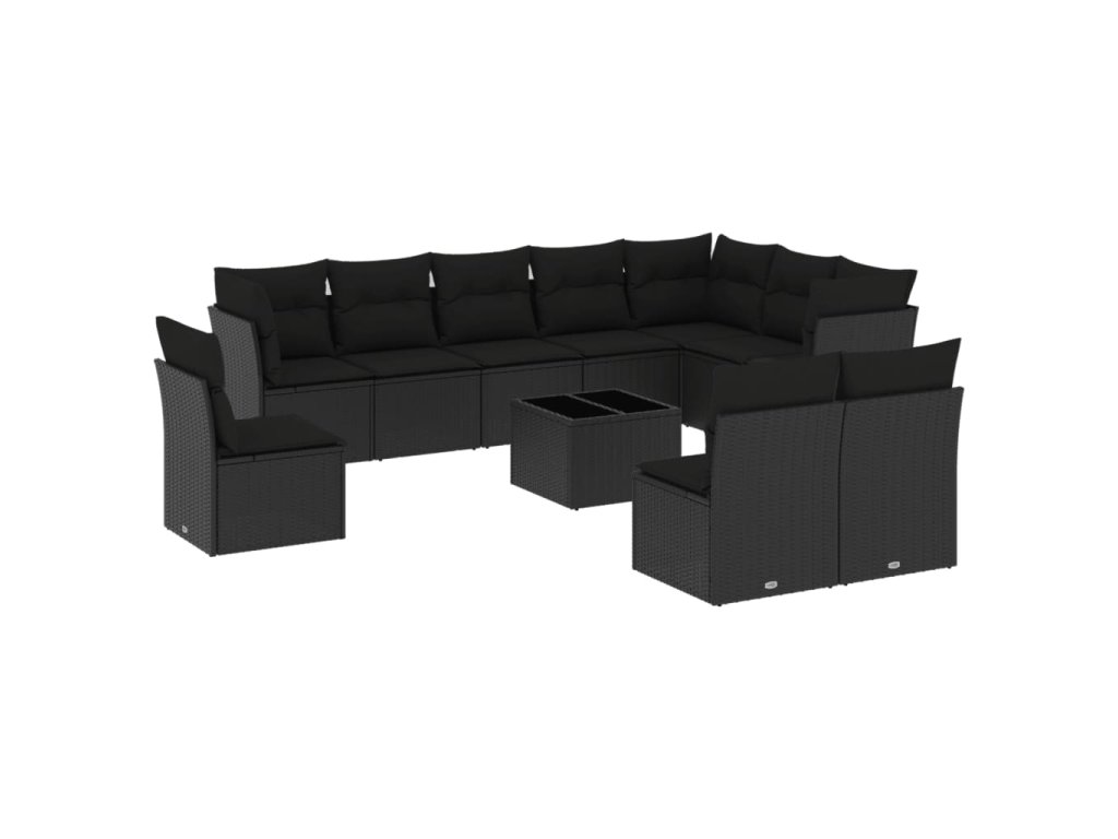 11dílná zahradní sedací souprava s poduškami černá polyratan 3217805