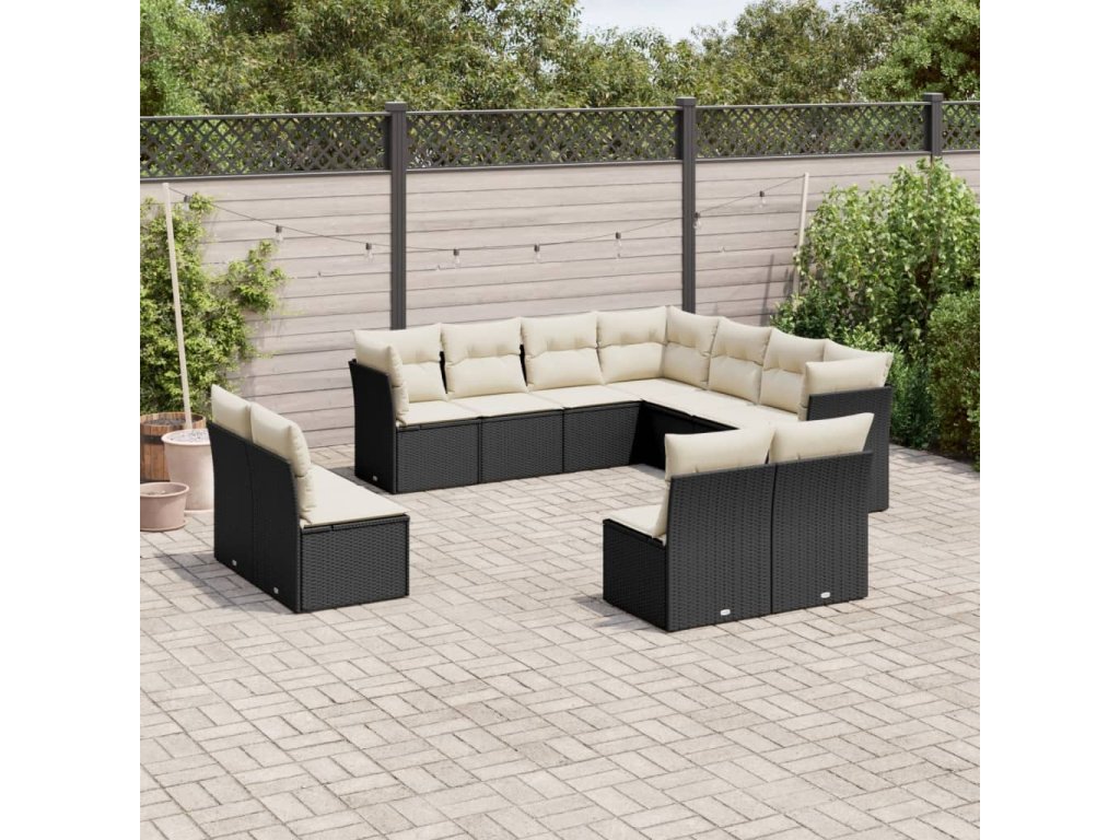 11dílná zahradní sedací souprava s poduškami černá polyratan 3217816