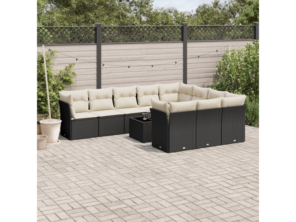 11dílná zahradní sedací souprava s poduškami černá polyratan 3218226