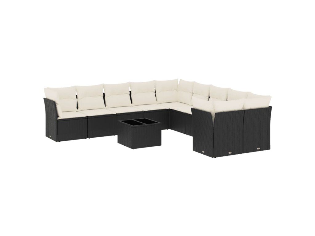 11dílná zahradní sedací souprava s poduškami černá polyratan 3218246