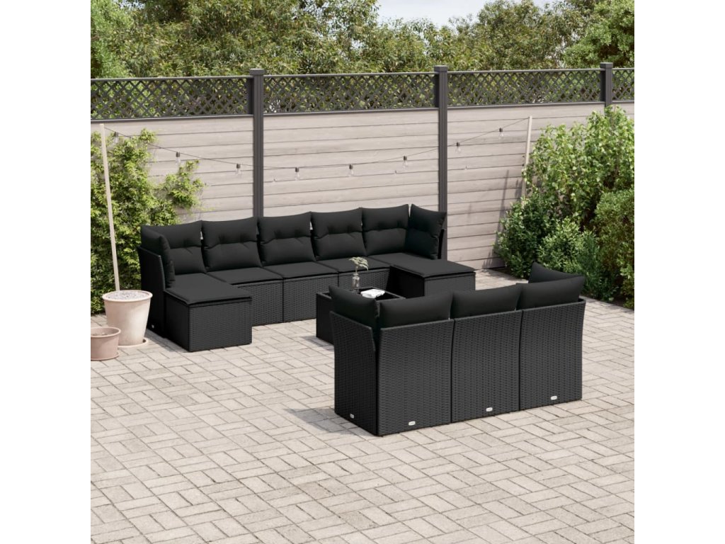 11dílná zahradní sedací souprava s poduškami černá polyratan 3218335