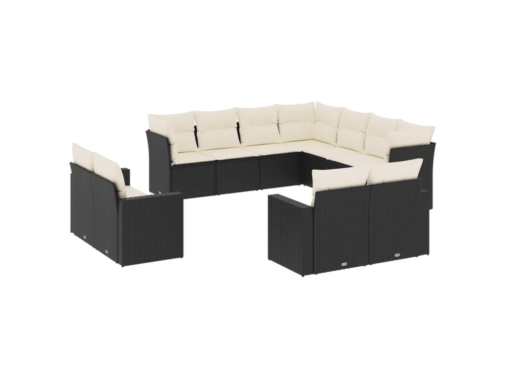 11dílná zahradní sedací souprava s poduškami černá polyratan 3219116
