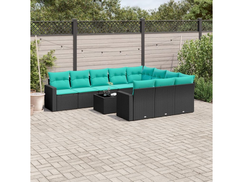 11dílná zahradní sedací souprava s poduškami černá polyratan 3219487