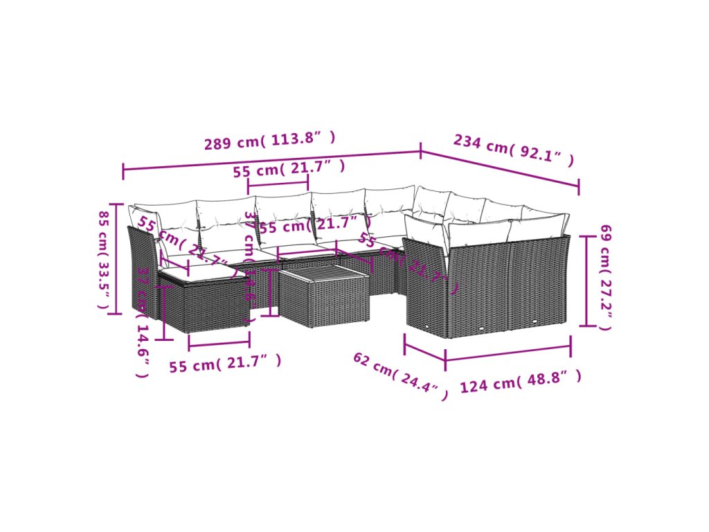 11dílná zahradní sedací souprava s poduškami černá polyratan 3223970