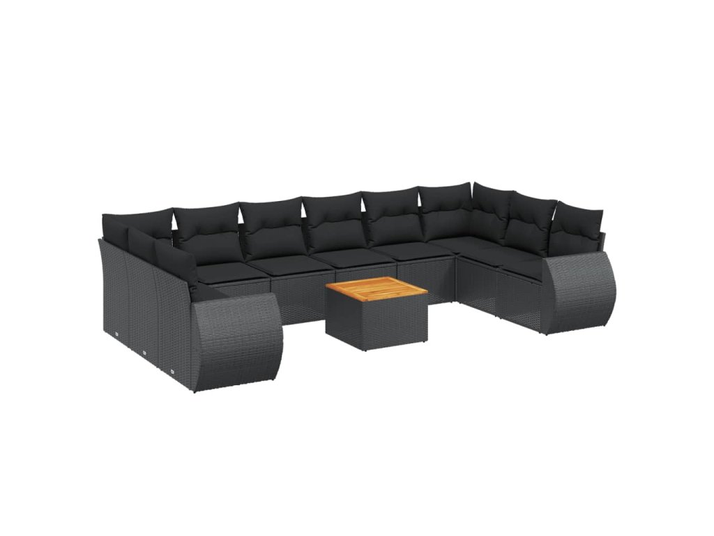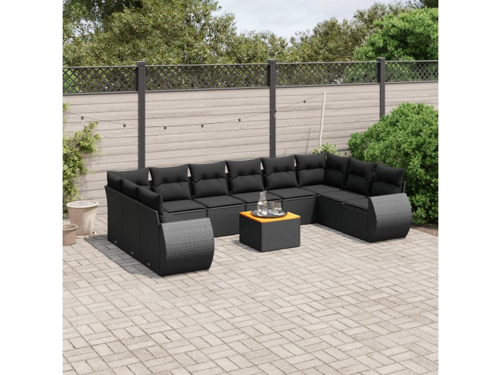 11dílná zahradní sedací souprava s poduškami černá polyratan 3225173