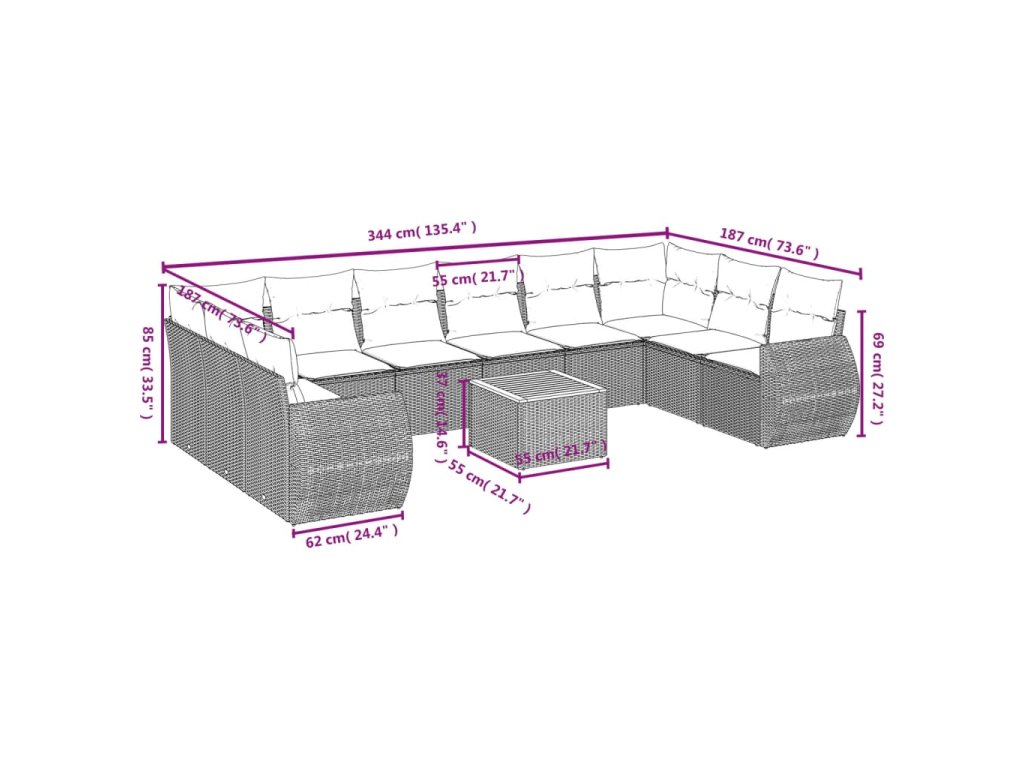 Tato zahradní sedací souprava je dokonalým doplňkem vaší zahrady, terasy nebo dvorku a poskytne vám pohodlné a příjemné místo, kde si můžete povídat s rodinou a přáteli nebo jen tak odpočívat a užívat si pobyt venku.