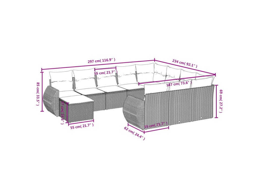Tato zahradní sedací souprava je dokonalým doplňkem vaší zahrady, terasy nebo dvorku a poskytne vám pohodlné a příjemné místo, kde si můžete povídat s rodinou a přáteli nebo jen tak odpočívat a užívat si pobyt venku.