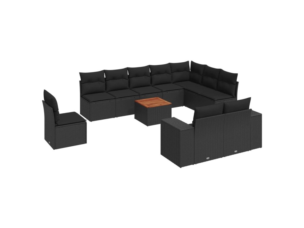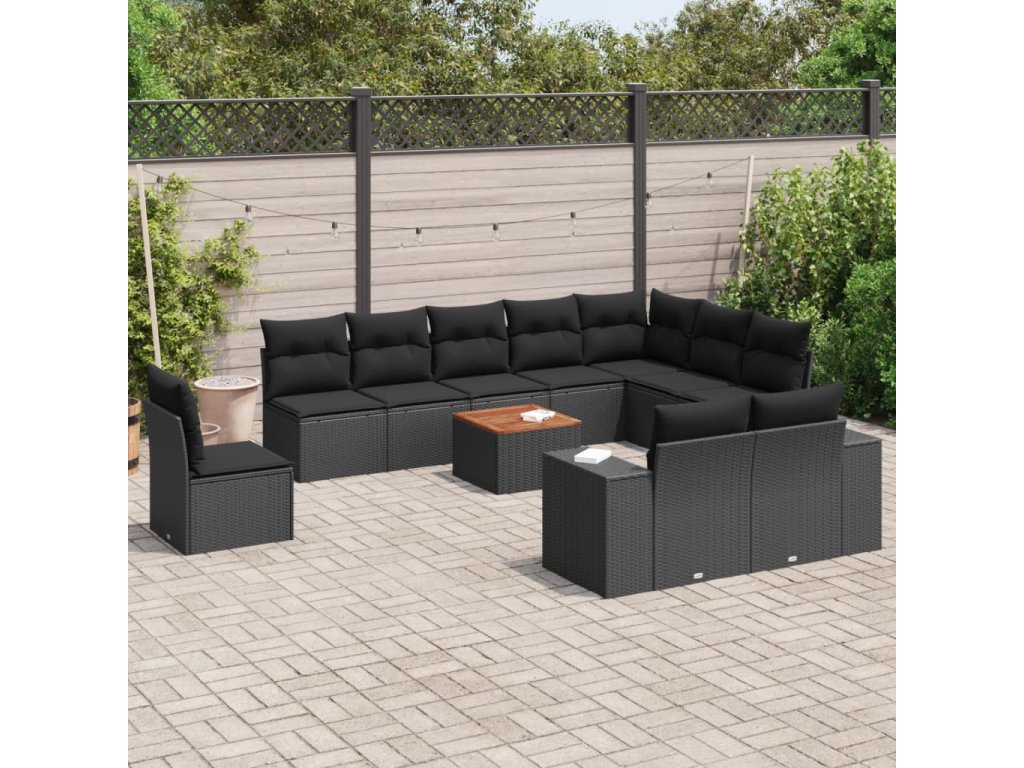 11dílná zahradní sedací souprava s poduškami černá polyratan 3225495