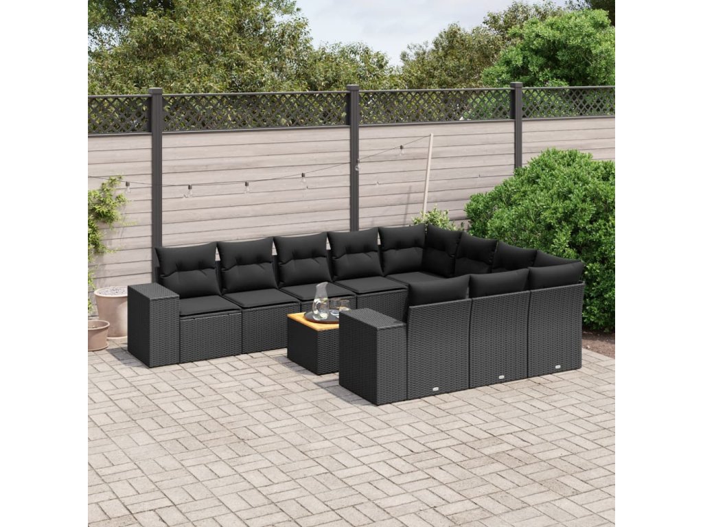 11dílná zahradní sedací souprava s poduškami černá polyratan 3225621