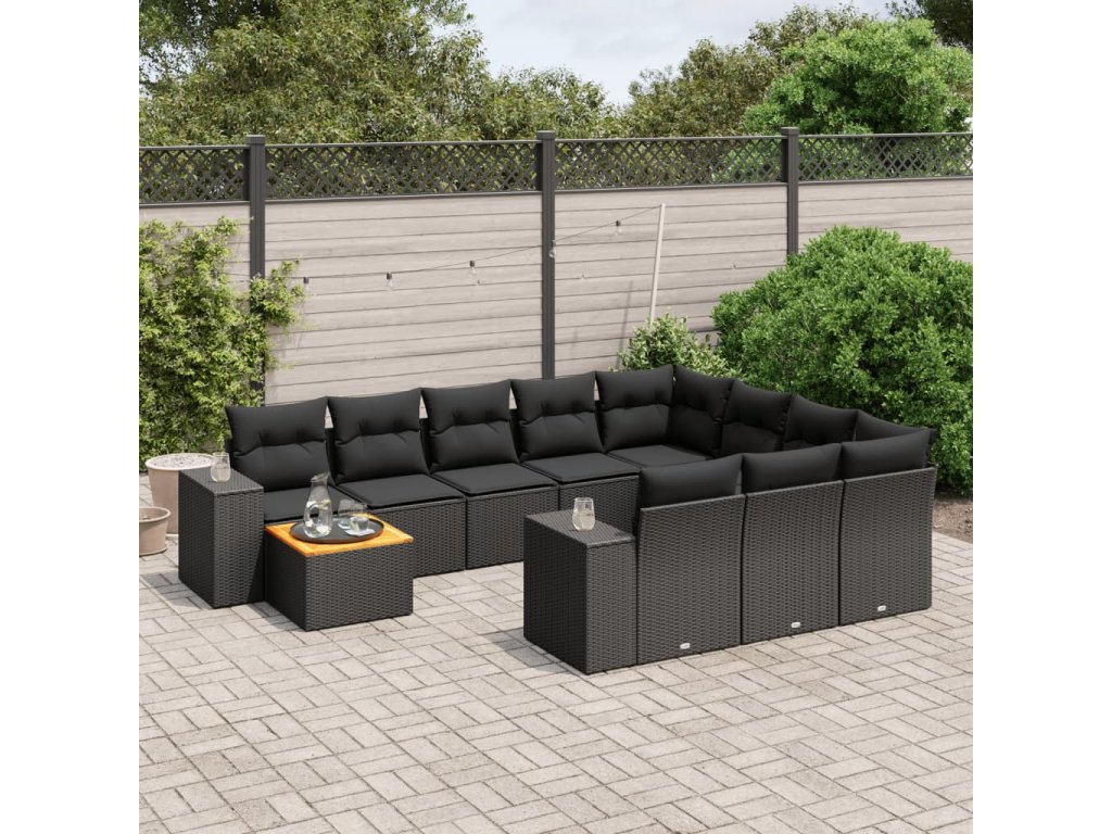 11dílná zahradní sedací souprava s poduškami černá polyratan 3225628