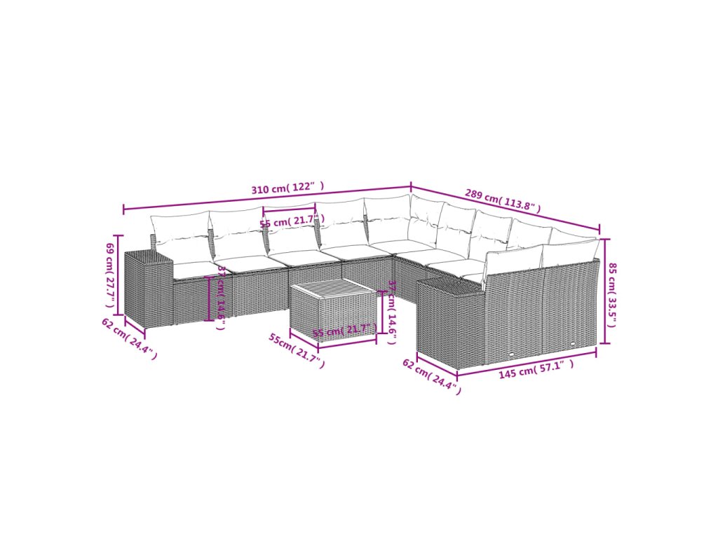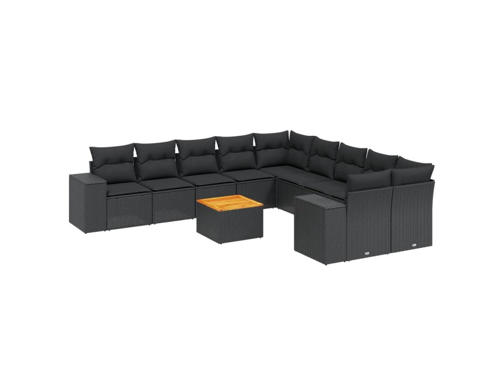 11dílná zahradní sedací souprava s poduškami černá polyratan 3225635