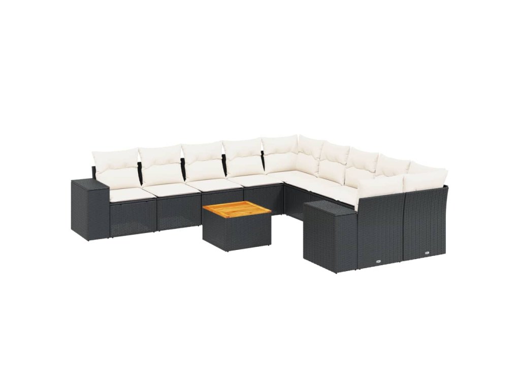 11dílná zahradní sedací souprava s poduškami černá polyratan 3225636