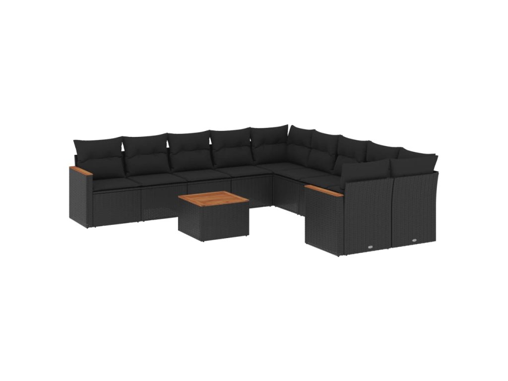 11dílná zahradní sedací souprava s poduškami černá polyratan 3226356