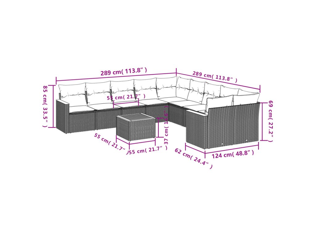 Tato zahradní sedací souprava je dokonalým doplňkem vaší zahrady, terasy nebo dvorku a poskytne vám pohodlné a příjemné místo, kde si můžete povídat s rodinou a přáteli nebo jen tak odpočívat a užívat si pobyt venku.