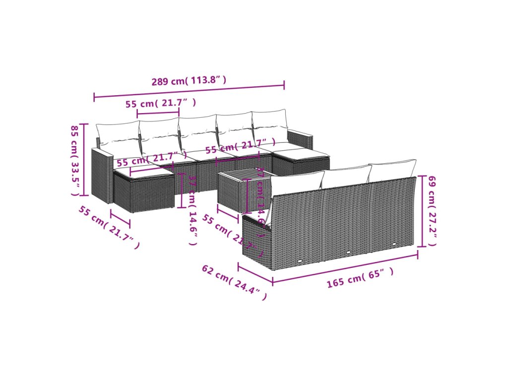 11dílná zahradní sedací souprava s poduškami černá polyratan 3226392