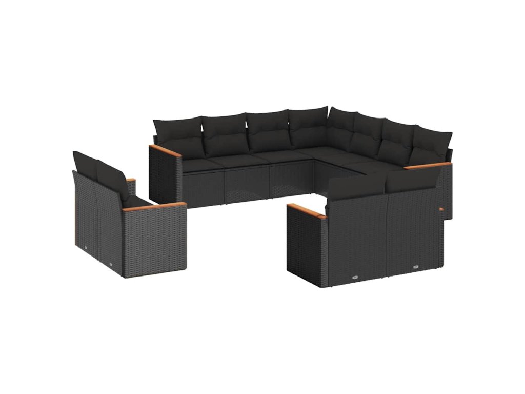 11dílná zahradní sedací souprava s poduškami černá polyratan 3226496