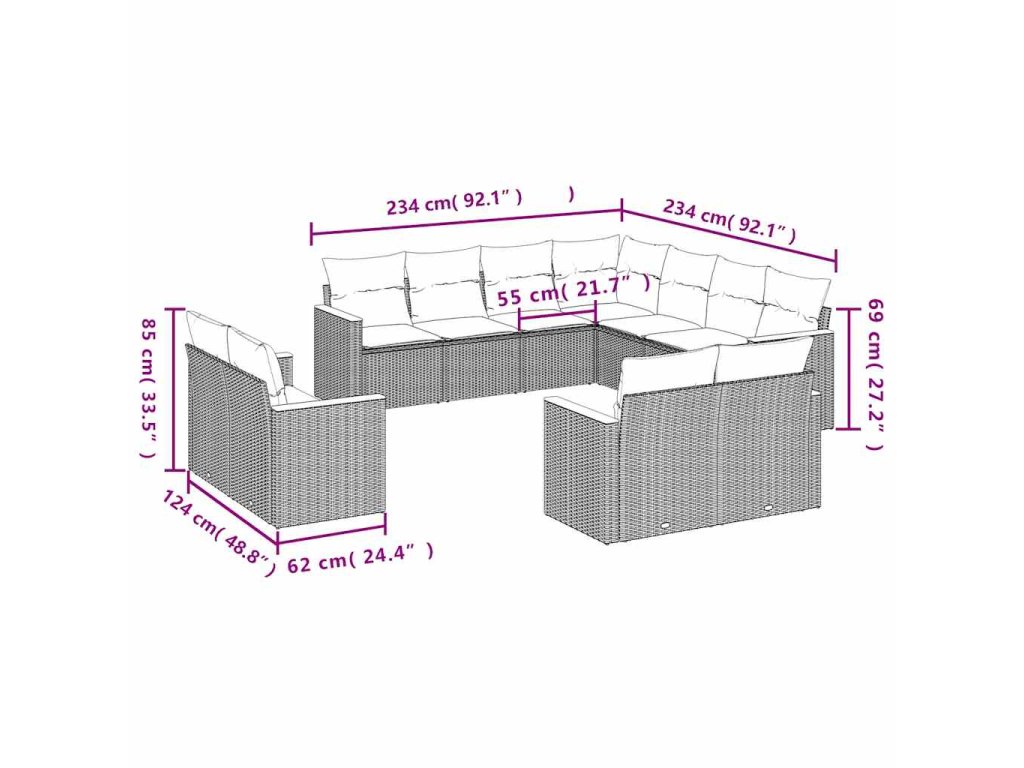 Tato zahradní sedací souprava je dokonalým doplňkem vaší zahrady, terasy nebo dvorku a poskytne vám pohodlné a příjemné místo, kde si můžete povídat s rodinou a přáteli nebo jen tak odpočívat a užívat si pobyt venku.