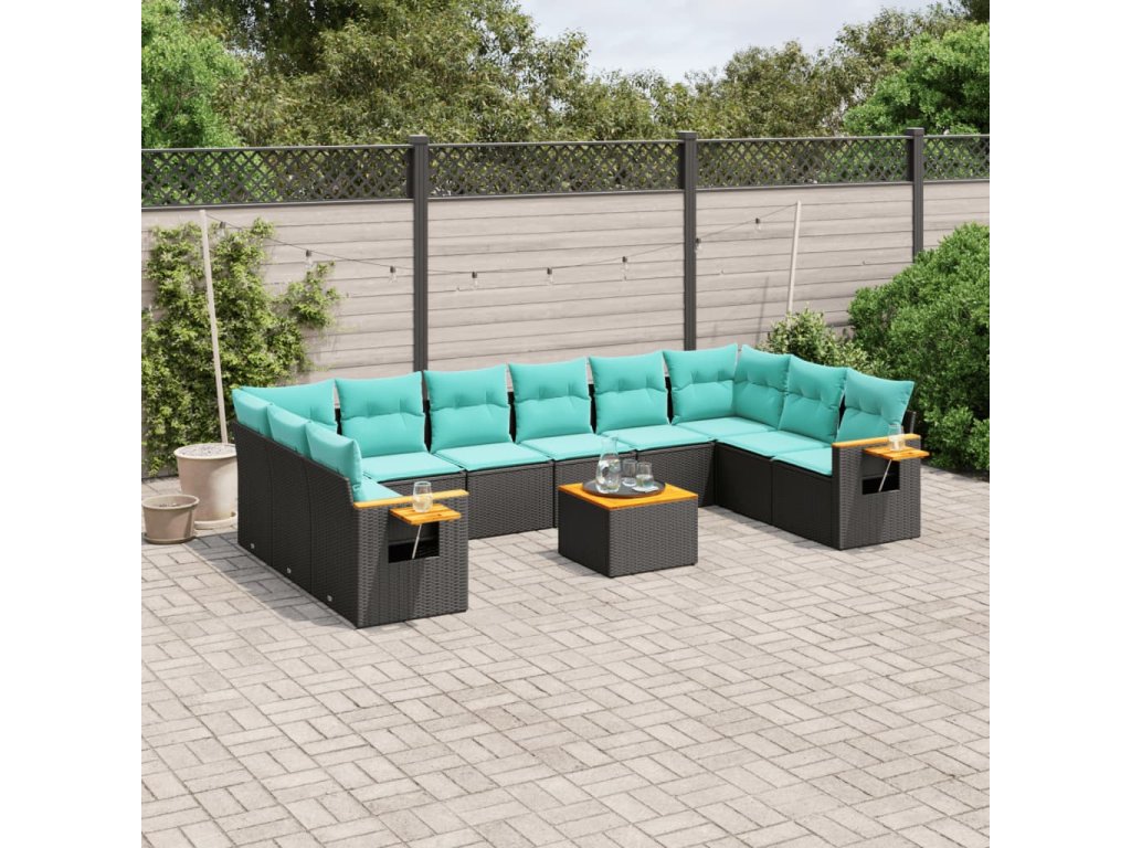11dílná zahradní sedací souprava s poduškami černá polyratan 3227170