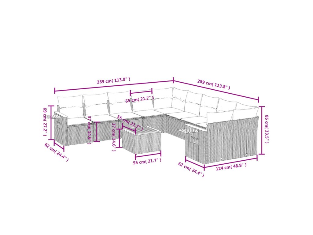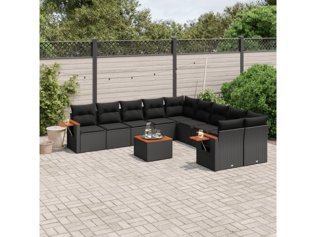 11dílná zahradní sedací souprava s poduškami černá polyratan 3227196