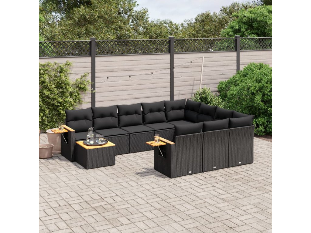11dílná zahradní sedací souprava s poduškami černá polyratan 3227203