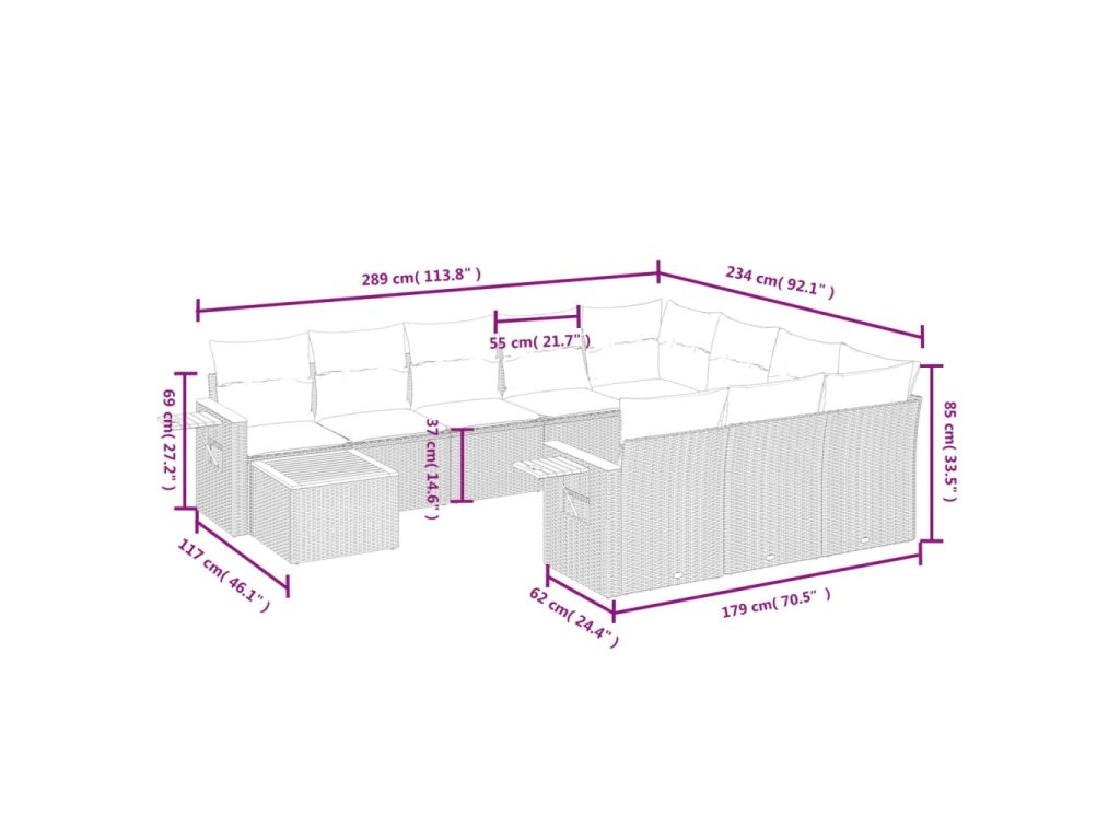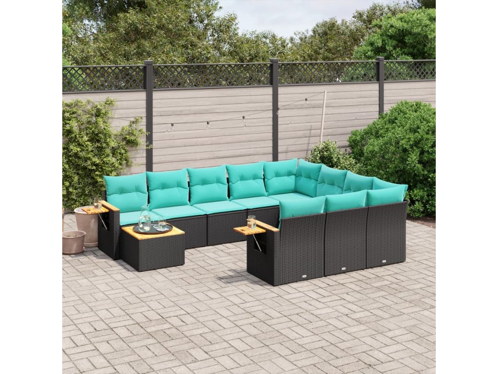 11dílná zahradní sedací souprava s poduškami černá polyratan 3227205