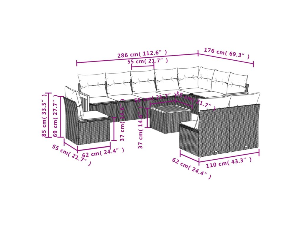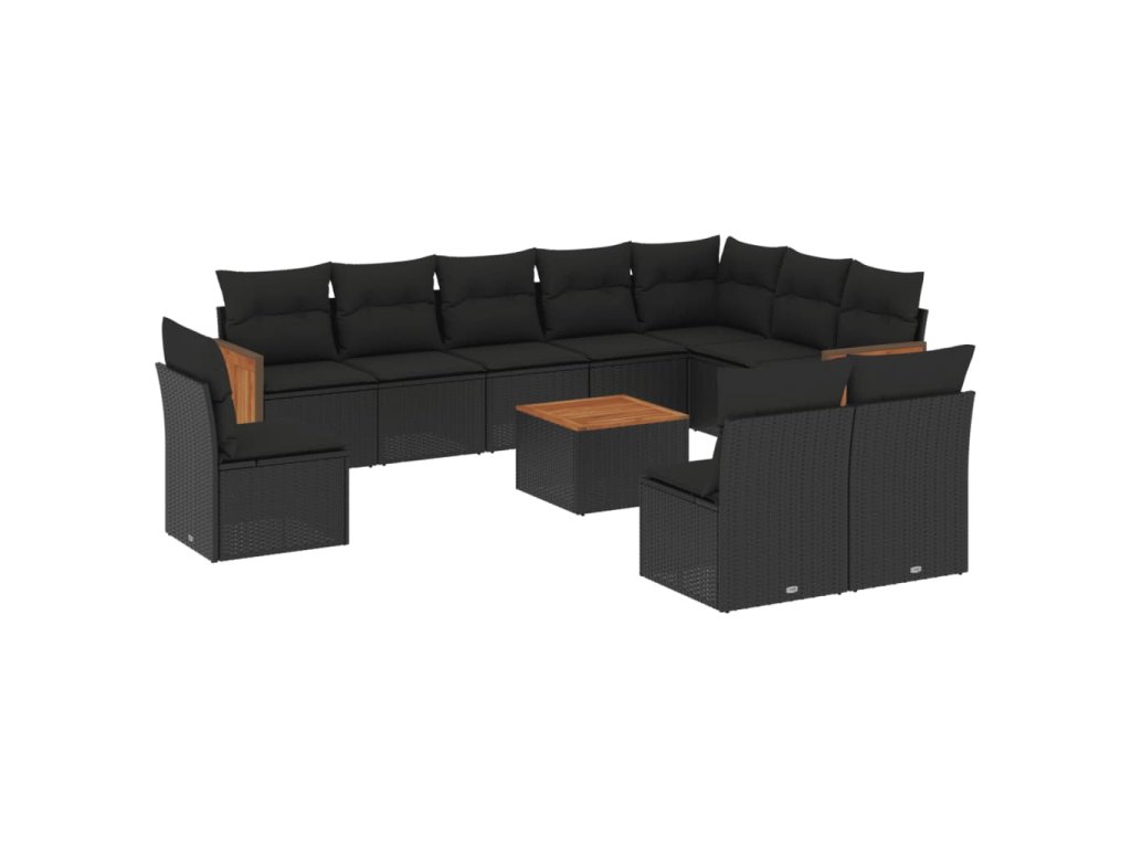 11dílná zahradní sedací souprava s poduškami černá polyratan 3227756