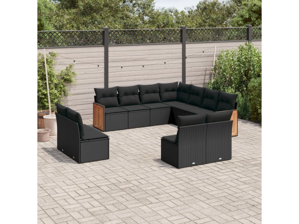 11dílná zahradní sedací souprava s poduškami černá polyratan 3227763