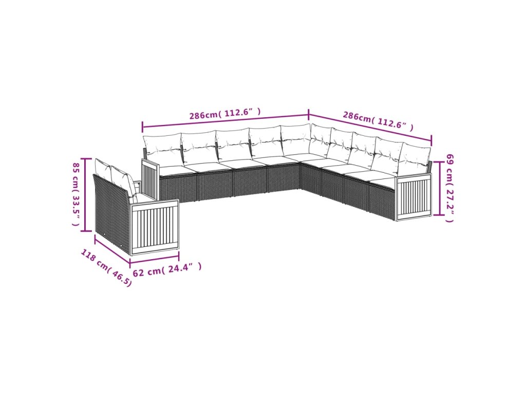 11dílná zahradní sedací souprava s poduškami černá polyratan 3227806