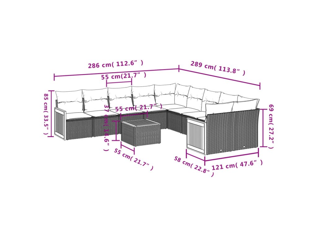11dílná zahradní sedací souprava s poduškami černá polyratan 3228037