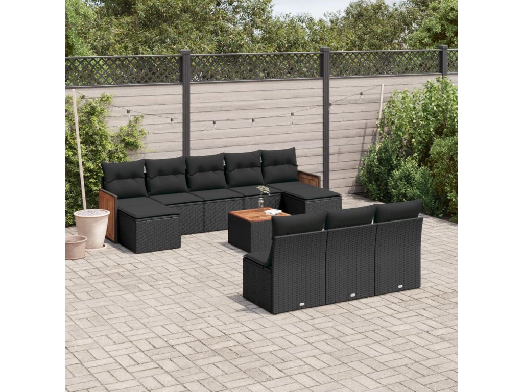 11dílná zahradní sedací souprava s poduškami černá polyratan 3228071