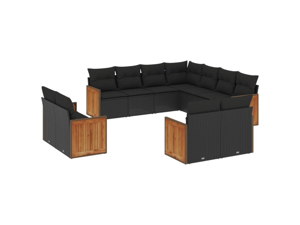 11dílná zahradní sedací souprava s poduškami černá polyratan 3228176