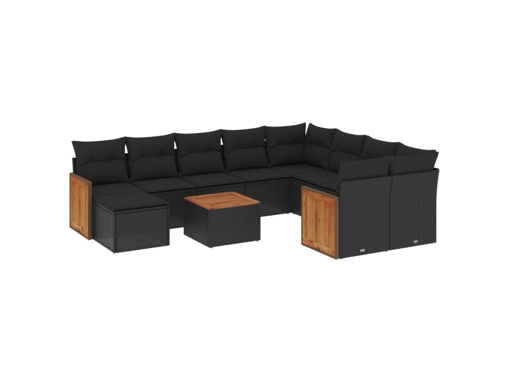 11dílná zahradní sedací souprava s poduškami černá polyratan 3228239